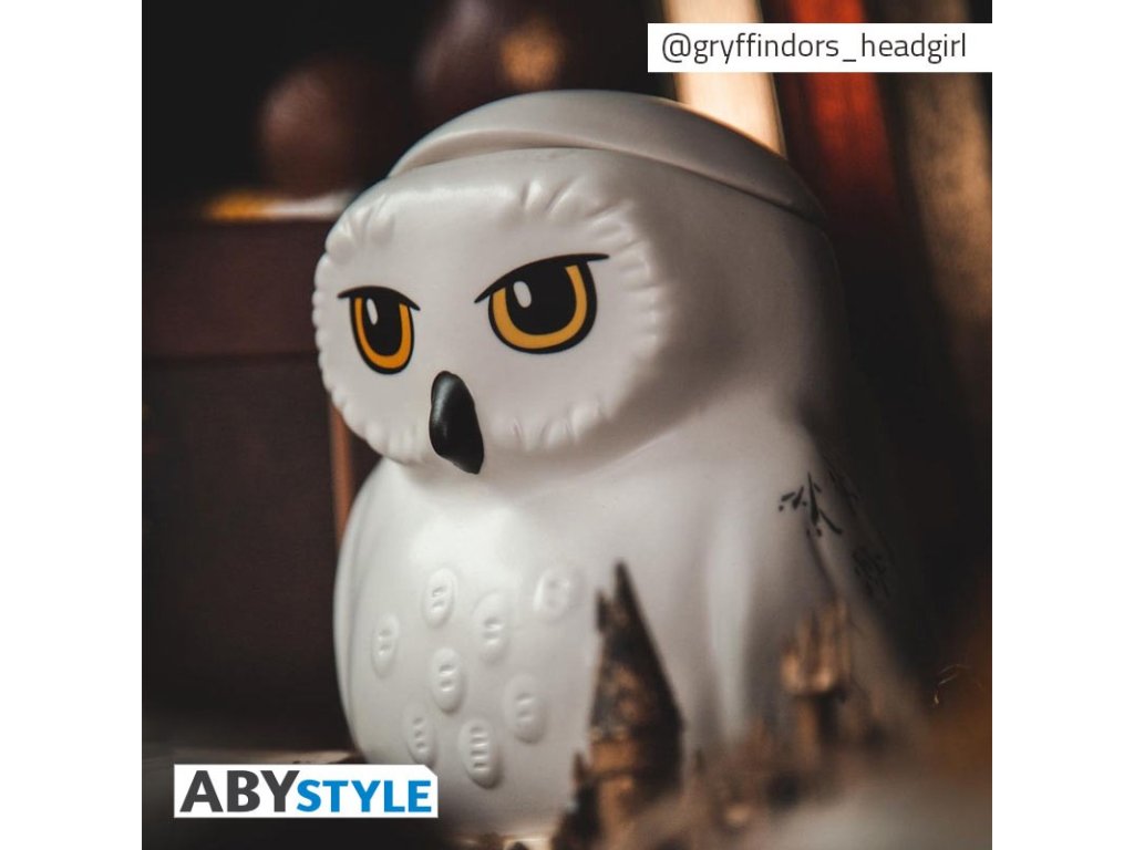 Formázot bagolyi bögre Hedvig, Harry Potter barátya a J. K. Rowlingovej történetbol, a fiatal diák a boszorkány iskolábol Rokfortban.