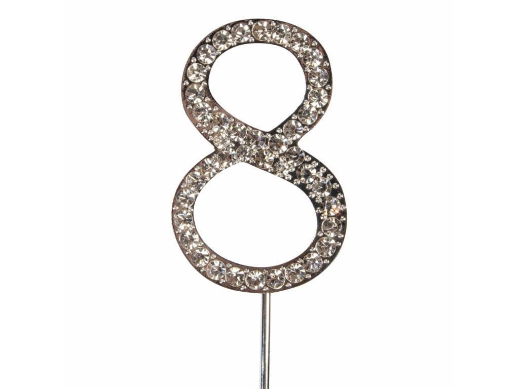 Az elegáns strasszdísz tökéletesen díszíti a születésnapi tortákat és desszerteket. Még egy egyszerű sütemény is elegáns és fényűző benyomást kelthet ennek a gyémánttal díszített életkort kifejező dísznek köszönhetően.