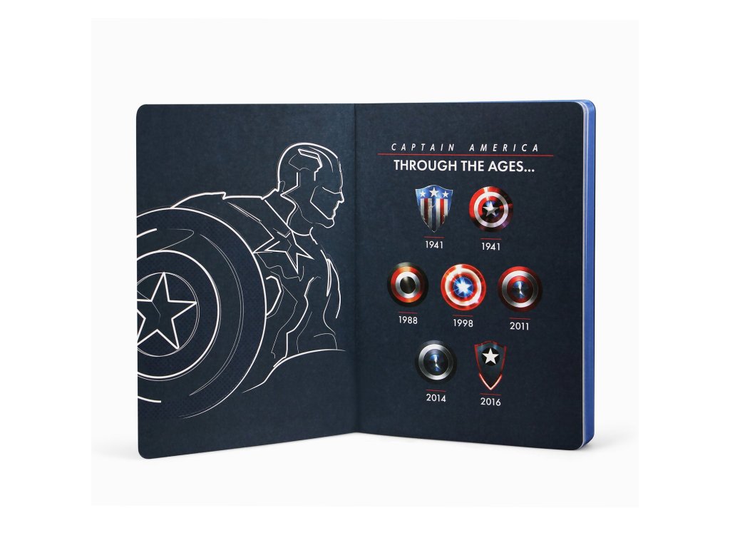 Rögzítse minden kalandját ebben az eredeti Amerika Kapitány tervezésű jegyzetfüzetben. A jegyzetfüzet tökéletes ajándék lesz a Marvel képregények szerelmeseinek.