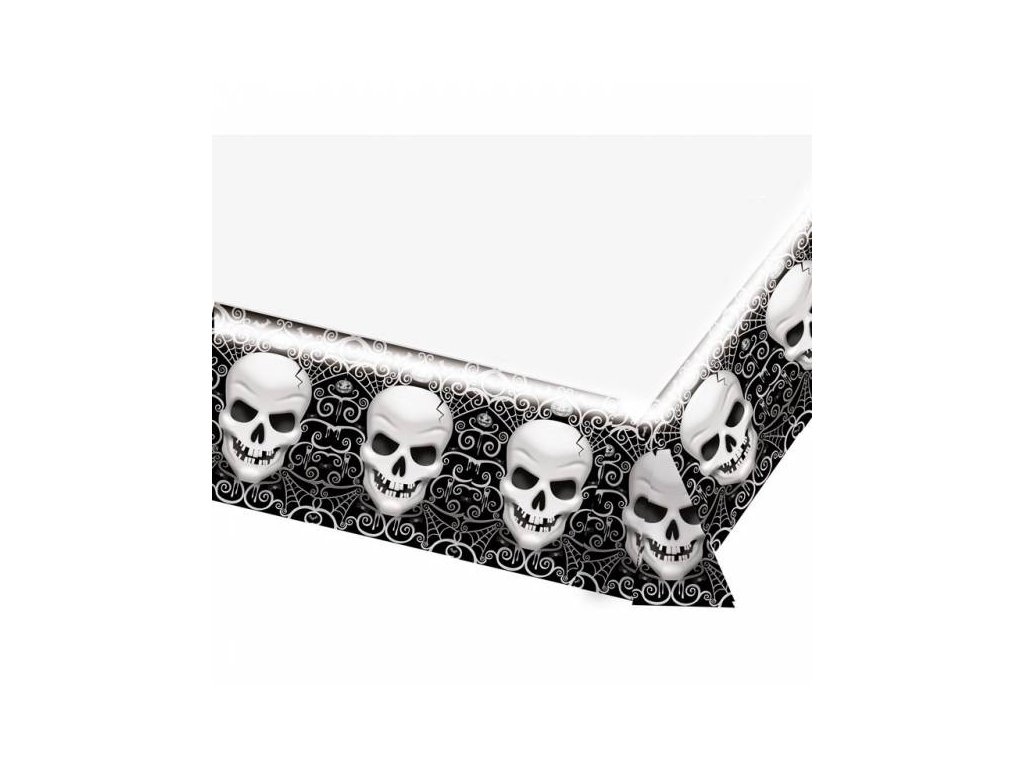 Minden ünnepeség kihagyhatatlan kelléke a terítéshez az abrosz. Ez az érdekes koponyák abrosz különlegessé teszi az egész díszítés légkörét. Leginkább a halloween partyra alkalmas.