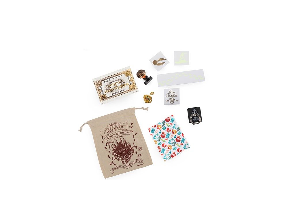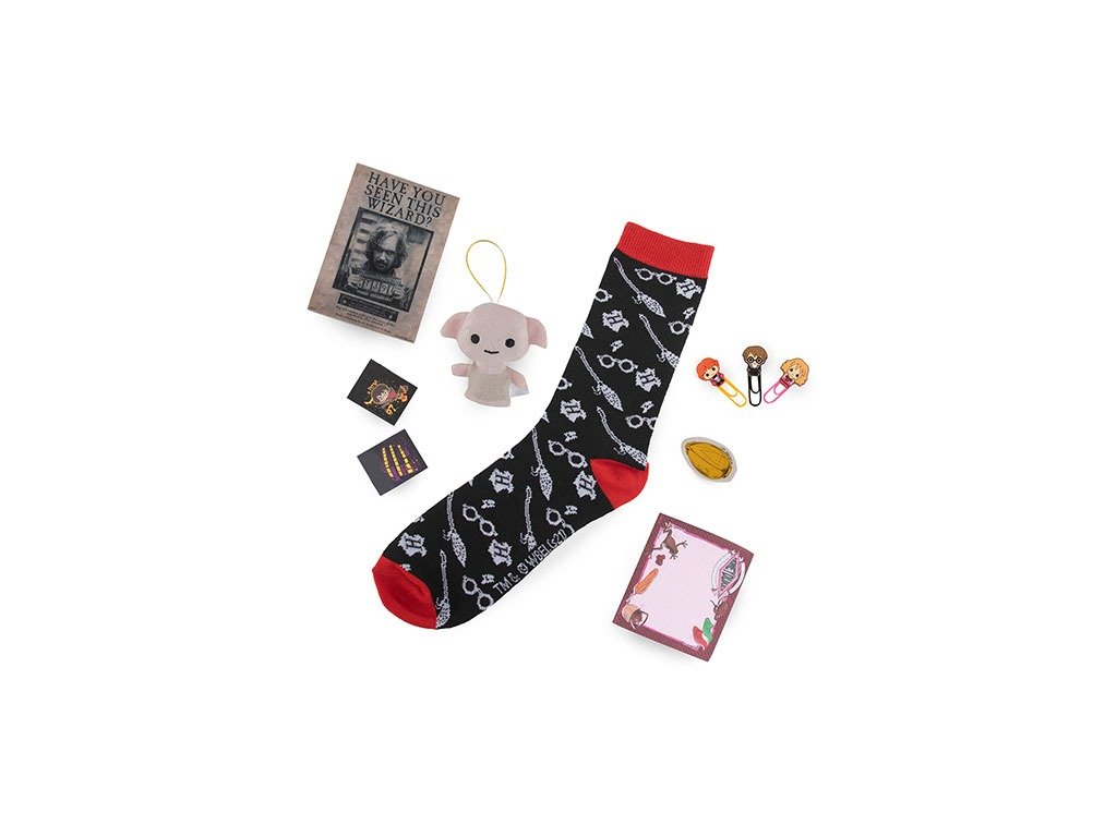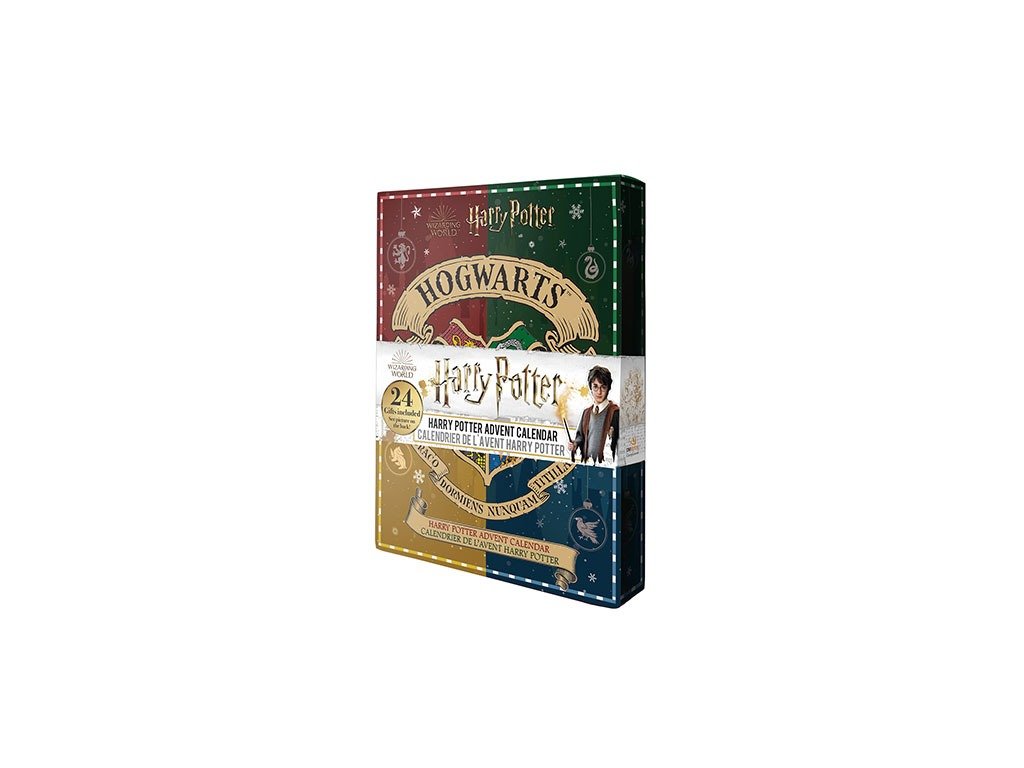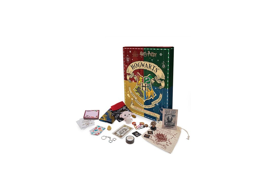 Karácsony a Harry Potter varázsvilágában. A kalendárium 24 különböző ajándékot tartalmaz: plüss kulcstartót, vászon táskát, jelvényt, matricákat, gemkapcsokat, kulcstartót, tetoválásokat és sok más ajándékot.