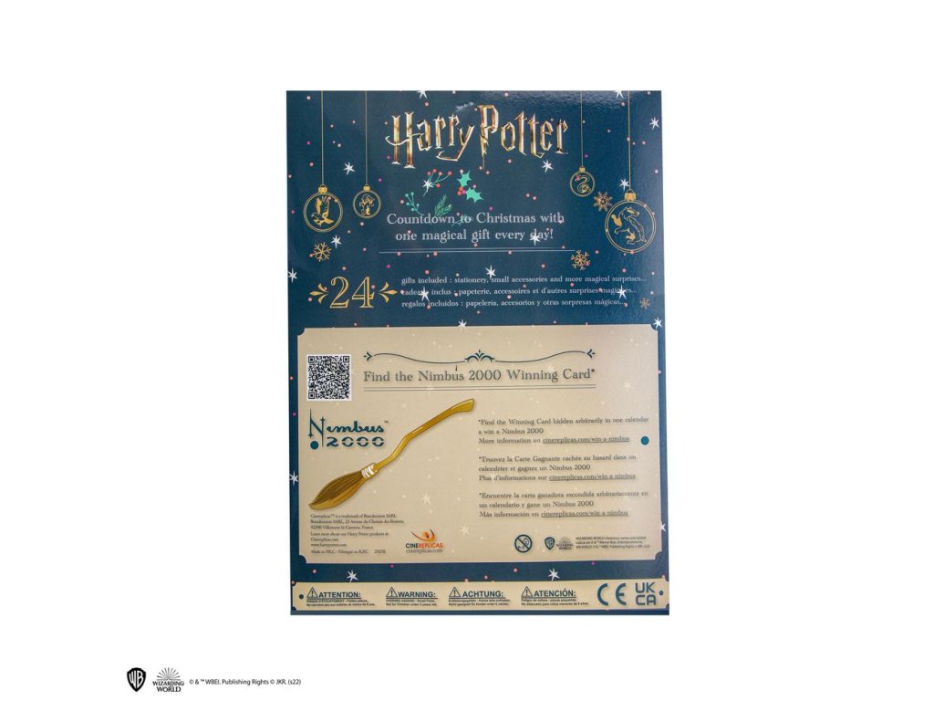 A Harry Potter Adventi naptár 24 ajándékot tartalmaz: plüss kulcstartó, táska, kitűző, nyaklánc - heg, telefonmatricák, görgetőszalag, tetoválás, cetlik, gyerek pecsétek, kulcstartó, jegyzettömb, mini kiemelők, gémkapocs, matricák + további meglepetések.
