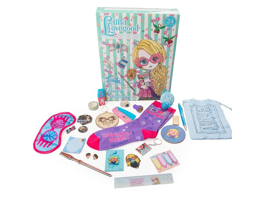 A Luna Lovegood Adventi naptár 24 különböző ajándékot tartalmaz: zokni, írószer, kulcstartó, könyvjelző, tisztítókendő, puzzle, washi szalag, bélyegző, törölköző, mágnes + további meglepetések.