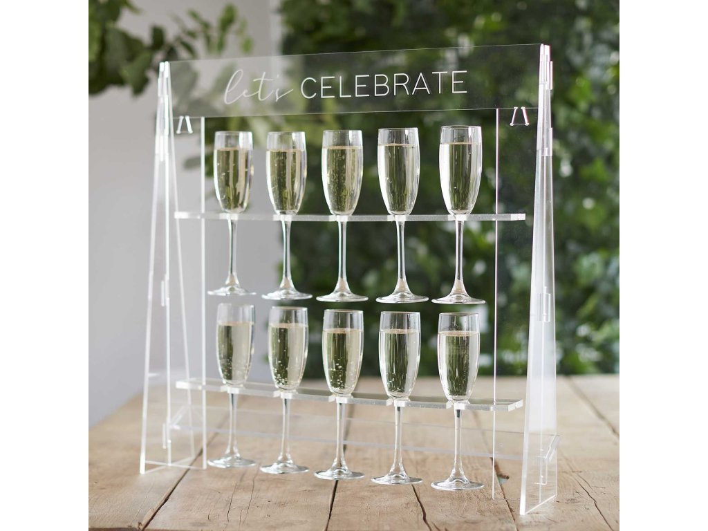 Figyelje vendégei arcát, amikor meglátják ezt a falat, amely tele van csillogó poharakkal és finom pezsgővel. Készítsen olyan meglepetést vendégeinek amelyet biztosan nem felejtenek el. Helyezze el a teremben olyan helyen hogy a vendégei kényelmesen el tudják venni a pezsgőt vagy állítsa az édesség sarokba az esküvőn, születésnapi partin vagy más ünnepségen.