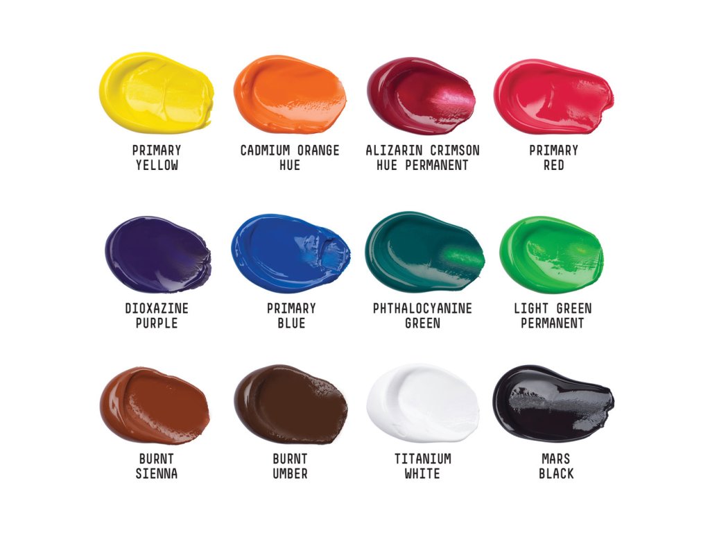 A készlet 12 élénk akrilfestéket tartalmaz, amelyek minden alkotást ragyogóvá varázsolnak! A színeket tetszés szerint keverheti, így saját árnyalatokat és művészi varázslatokat hozhat létre. Ezzel a készlettel a fantázia határtalan – csak nyissa ki a tubust, és kezdődhet a vidám festés!