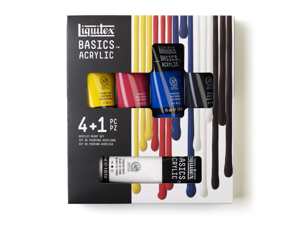 Akrilfesték készlet 4x75ml + 1x118ml titánfehér Liquitex