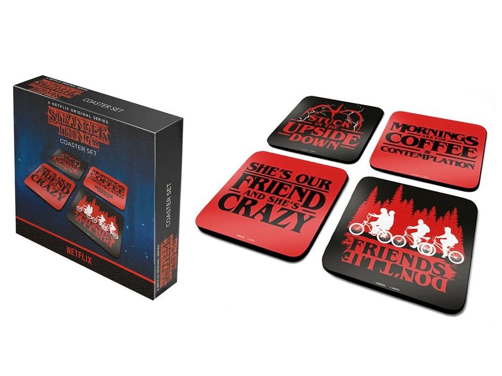 A szett tartalmazza a négy alátétet a híres sorozatból Stranger Things logóval. Az alátét logóval ideális ajándék lesz a sorozat kedvelőjének.