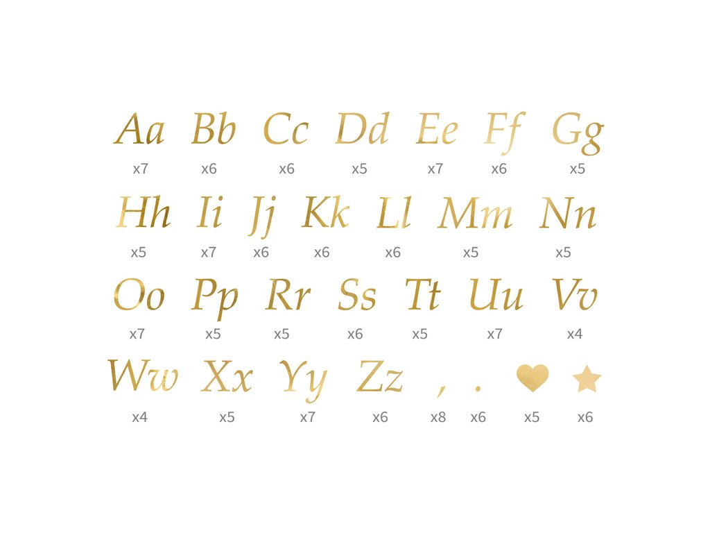 Az arany betűk matricák formájában tökéletes módja annak, hogy egy csipet luxust adjon dekorációjához. Ezekkel az arany betűkkel saját feliratokat, neveket vagy idézeteket készíthet, hogy személyessé tegye a dekorációt.