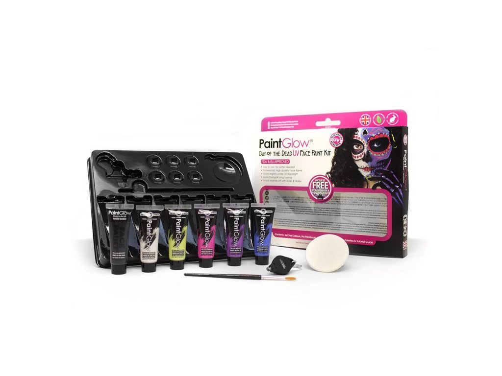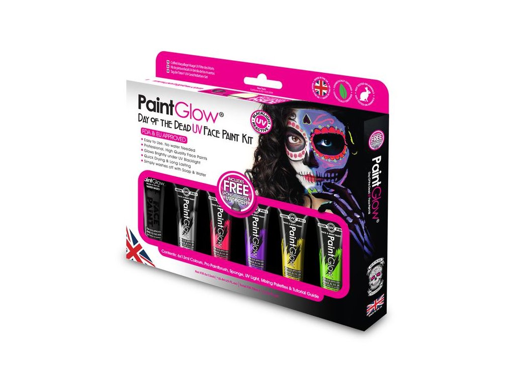 Szeretne halloweenra horror sminket készíteni? Próbálja ki ezt az arcra vagy testre könnyebb felvitelt lehetővé tevő, szivacsot és ecsetet tartalmazó festék szettet. A szett 6 különböző, UV fény alatt világító színt tartalmaz. A festékek arcra vagy testre történő festésre alkalmasak. Dermatológiailag teszteltek, ezért a bőrét nem kell féltenie. A termékek Nagy Britanniában készültek és azokat állatokon nem tesztelték.