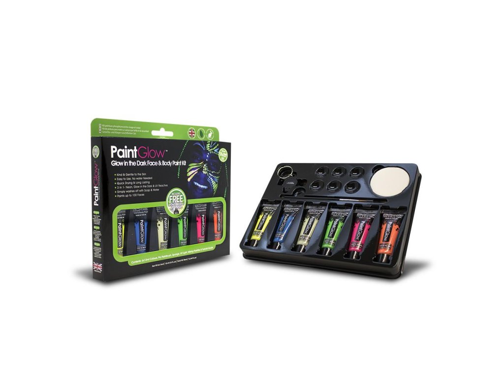 Szeretne ragyogó party sminket készíteni? Próbálja ki ezt az arcra vagy testre könnyebb felvitelt lehetővé tevő, szivacsot és ecsetet tartalmazó festék szettet. A szett 6 különböző színt tartalmaz, melyek világítanak a sötétben. A festékeket fényforrás segítségével kell feltölteni és este világítani fognak. A festékek arcra vagy testre történő festésre alkalmasak. Dermatológiailag teszteltek, ezért a bőrét nem kell féltenie. A termékek Nagy Britanniában készültek és azokat állatokon nem tesztelték.