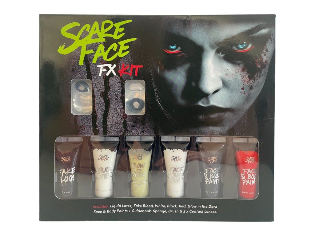 - csomagolás: 1 x hamis vér, 1 x arc latex, 1 x sötétben világító szín, 3 x arc és testfesték, 1 x lencsék, ecset és szivacs az alkalmazáshoz
