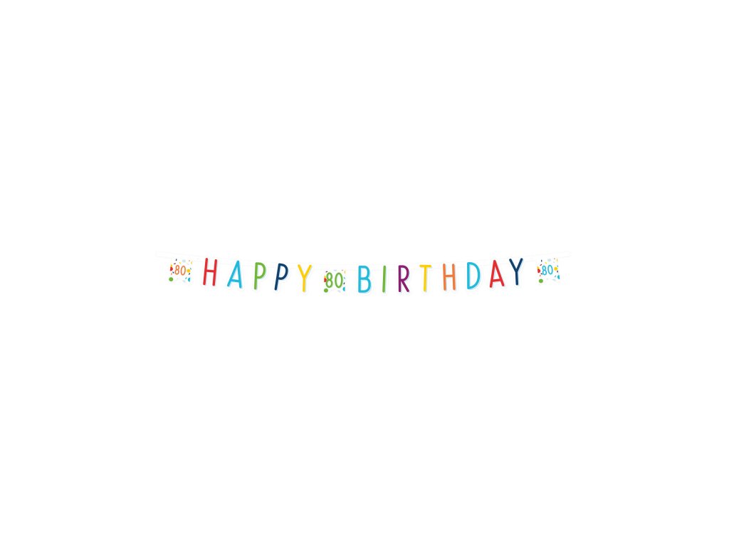 Készítsen színes partidekorációt - Boldog születésnapot banner-el. Ez a Happy Birthday banner tökéletes egy 80. születésnapi bulihoz.