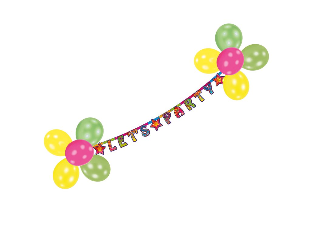 Banner színes lufikkal és Let's Party feliratal alkalmas minden születésnapi ünnepségre és partyra.