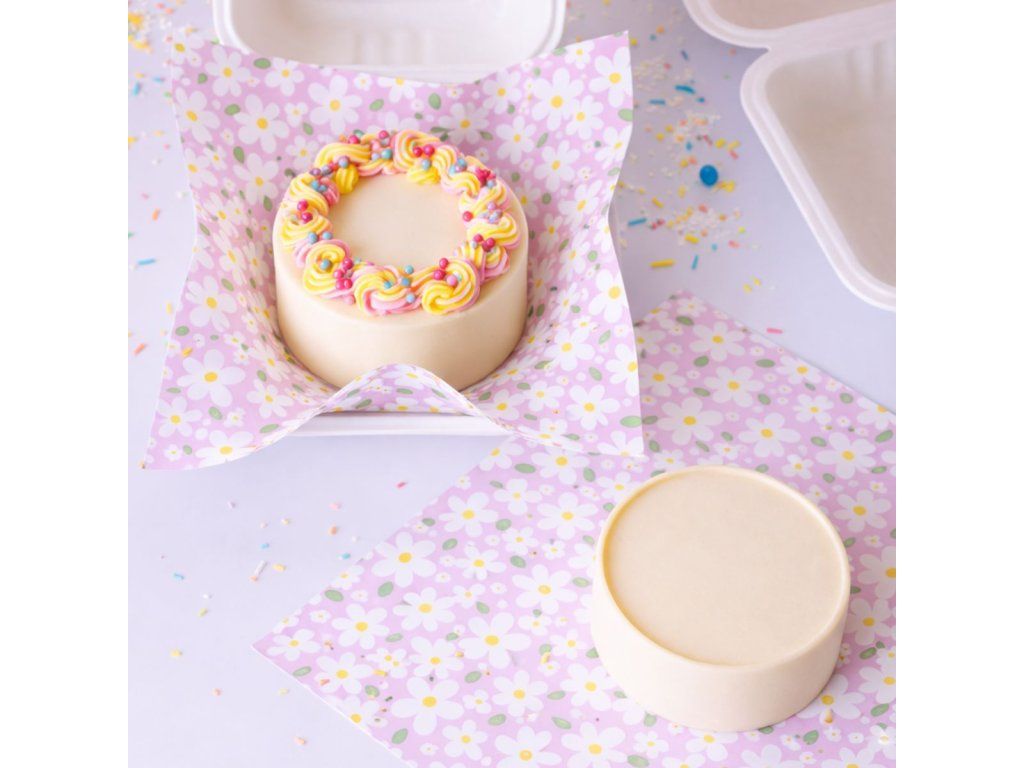 Adjon édességeinek finom és friss megjelenést a Tavaszi Virágok bélés papírral. A tavaszi stílusú virágmintás design gyönyörűen kiegészíti a sütemények, torták vagy más cukrászati finomságok csomagolását és kiemeli azok vonzó prezentációját.