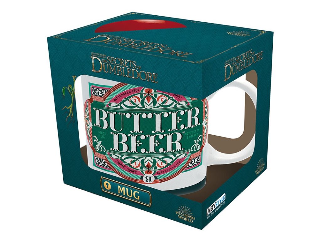 A két legnagyobb mágus harca Albus Dumbledore és Gellert Grindelwald a kedvenc itala mellett a Vajsör motívummal ellátott bögréből.