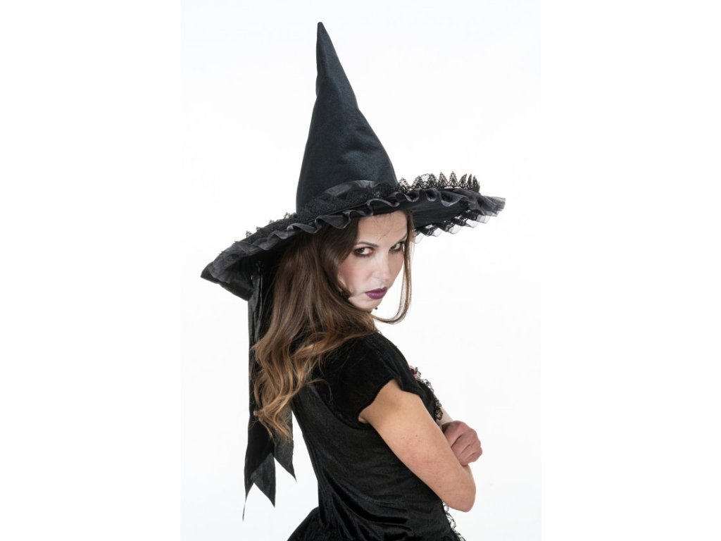 Boszorkány kalap csipkével - Fekete