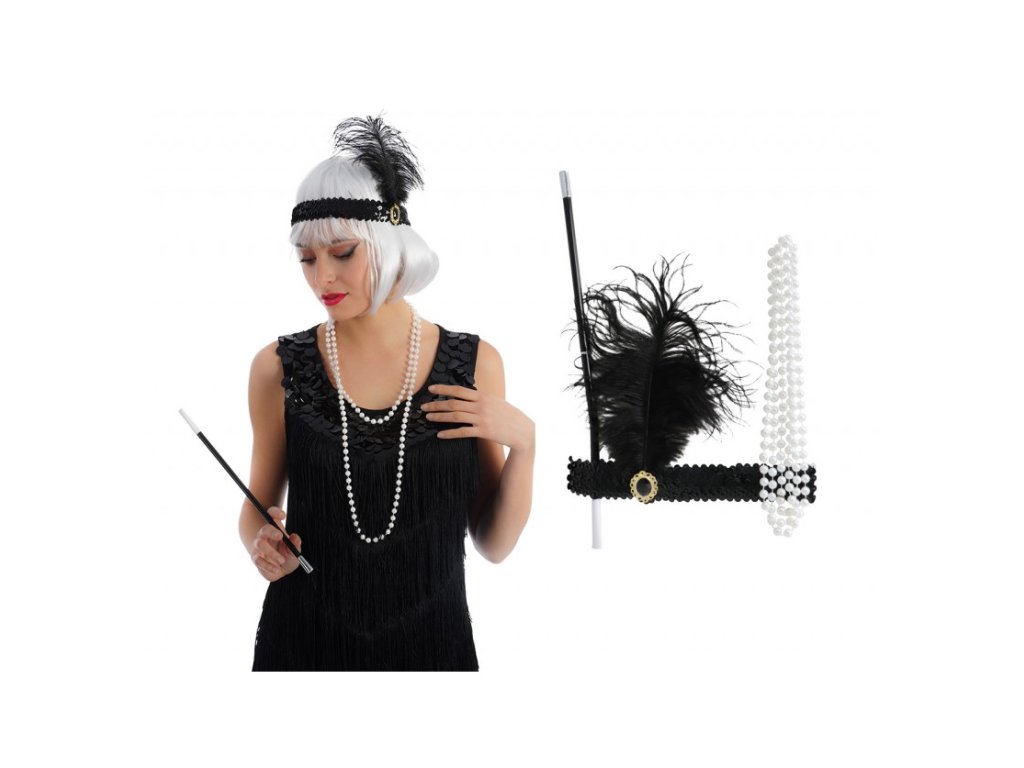 Képzelje magát az elegáns partik, a jazz dallamok és a pompás flapper ruhák idejébe ezzel a Charleston készlettel. Ezzel a tökéletes jelmez kiegészítővel bármilyen parti vagy tematikus est sztárjává válhat.