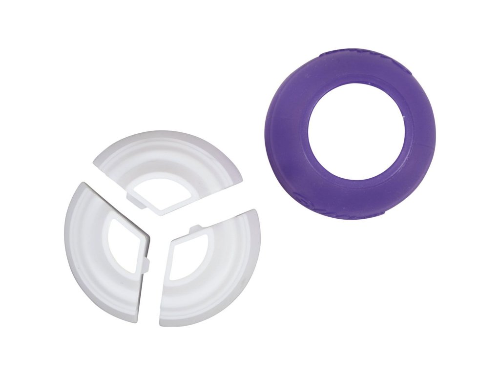 A körgyűrű segítségével csatolja fel a habzsákhoz a díszítőcsövet. A gyűrű biztonságosan összetartja a habzsákokat a tökéletes háromszínű végeredmény eléréséért. Használhat 1-3 habzsákot.