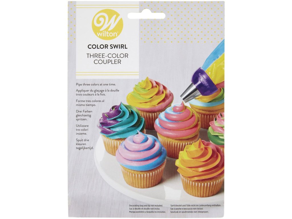 Ennek a díszítőcső csatlakozónak a segítségével három féle színű krémmel díszíthet. Két vagy három féle színben is díszítheti cupcakejeit vagy tortáját. Készítsen különleges süteményeket ezzel az ügyes segédeszközzel.