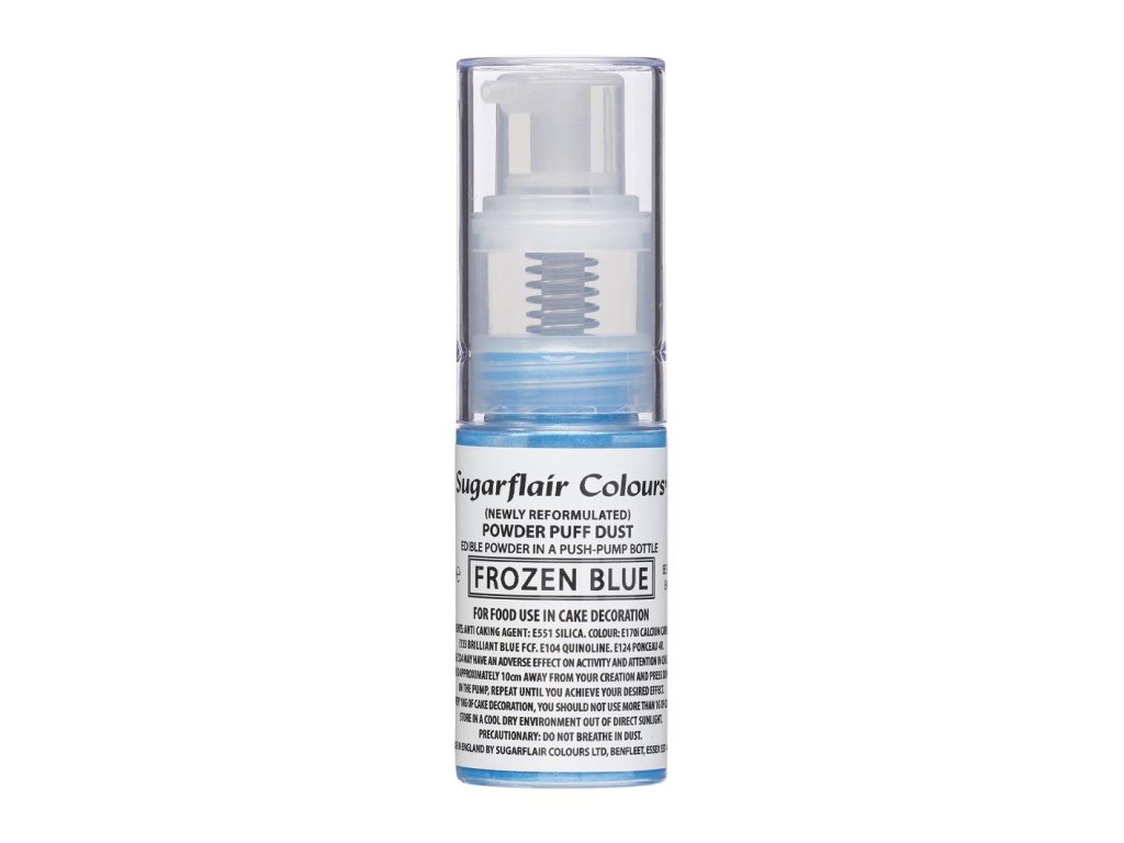 A praktikus permetezővel ellátott kék ehető szín elsősorban bevonó anyagok, fondant, marcipán és krémek bevonására szolgál. Könnyen használható gyermektorták, luxus desszertek és dekorációk díszítésére. Eredeti megjelenést kölcsönöz a desszerteknek.