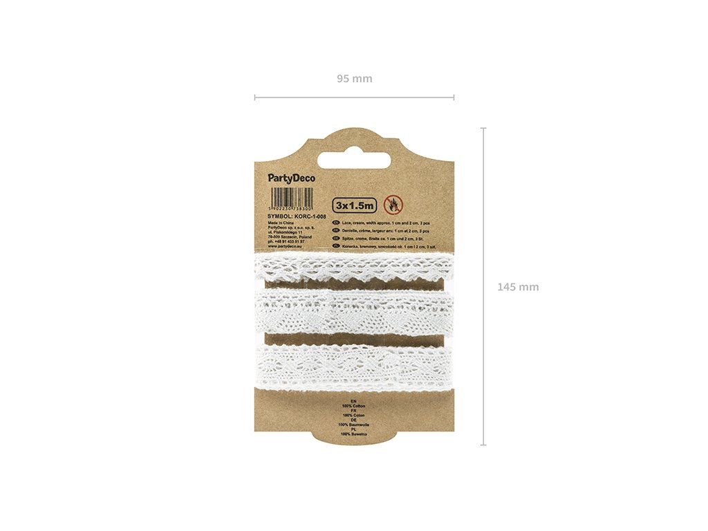 - méret: a hossza minden egyes csipkének 1,5 m; szélessége 1-2 cm