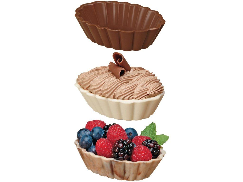 Kosárka formájú házi praliné készítésére tervezett forma. A formával csokoládé kosárkákat készíthet, amelyeket aztán megtölthet csokoládé vagy vajas krémmel, fagylalttal vagy gyümölccsel.