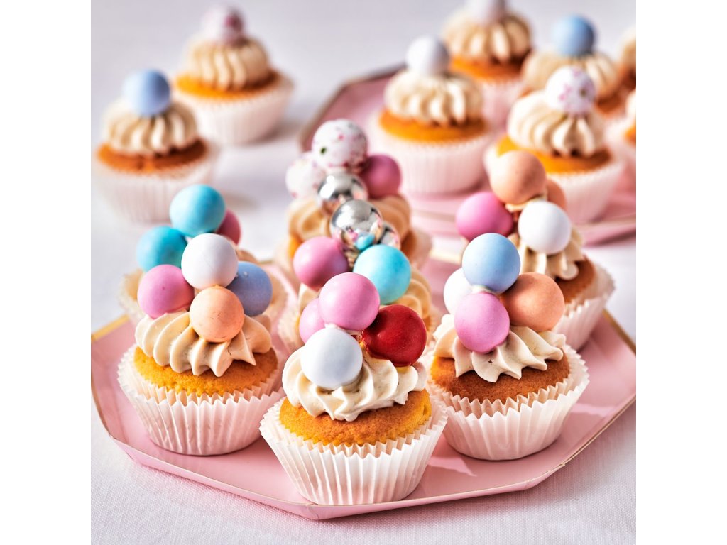 Csokoládé golyókkal díszíthet cupcakes-et, tortákat, süteményeket és egyéb desszerteket. A kész csokoládé golyók sütemények és piték ízletes dekorációi. Színezheti őket ehető spray vagy porfestékekkel, hogy érdekes és eredeti végeredményt érjen el. A termék nem tartalmaz glutént.