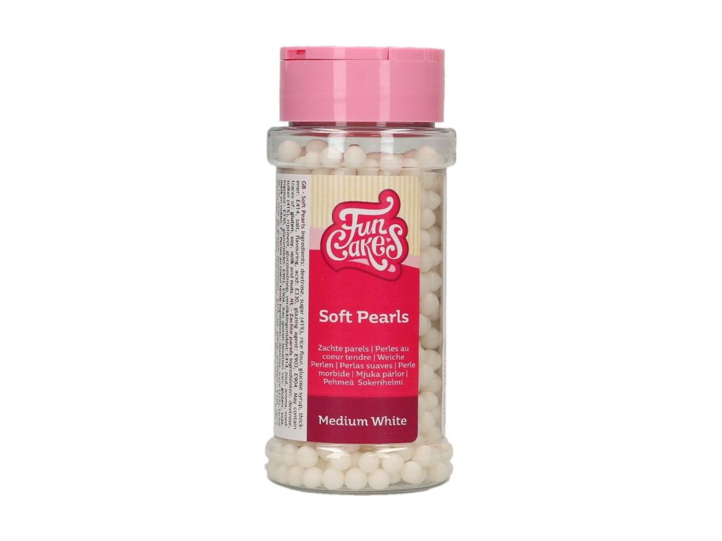 A Soft Pearls cukor golyócskák puha és finom édesipari termék amely remek választás gyermekek részére készült desszertekhez. A fehér ehető gyöngyök alkalmasak az ünnepi és elegáns torták díszítésére, luxus kinézetet adnak a tortáknak és desszerteknek.