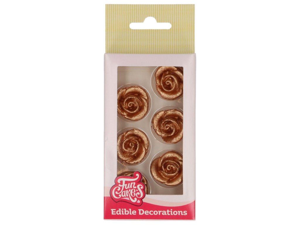 Add meg desszertjeidnek az elegáns és luxus megjelenést a FunCakes cukordíszítésekkel, bronz-arany rózsa formában. Ezek a kész dekorációk cukormasszából ideálisak torták, cupcakek vagy kekszek díszítésére, és segítenek gyorsan gyönyörű, tematikus desszertet készíteni. Csak egyszerűen helyezd a krémre, mázra vagy royal icingra, és az édességeid professzionális megjelenést kapnak. Az elegáns bronz-arany rózsák tökéletesek Valentin-napra, Anyák napjára, esküvői tortákra vagy ünnepi alkalmakra.