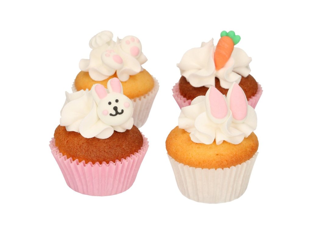 A cukordíszítés felhasználásával készíthet saját házi répatortát vagy húsvéti desszertet sárgarépa vagy nyuszi alakban. A készlet 8 db dekorációt tartalmaz, melly cupcakes, muffin és egyéb desszertek díszítésére is alkalmas. A termék nem tartalmaz glutént.