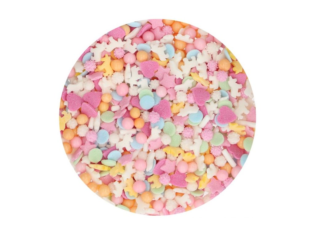 Az Unikornis cukrász díszítés minden varázslatos tortát vagy süteményt feldob. Az ehető szórással játékos megjelenést adhat a cupcakes-eknek, muffin-oknak, fánkoknak vagy cake pop-oknak, és számos kis rajongót örvendeztethet meg ennek a varázslatos állatnak a szerelmesei közül.