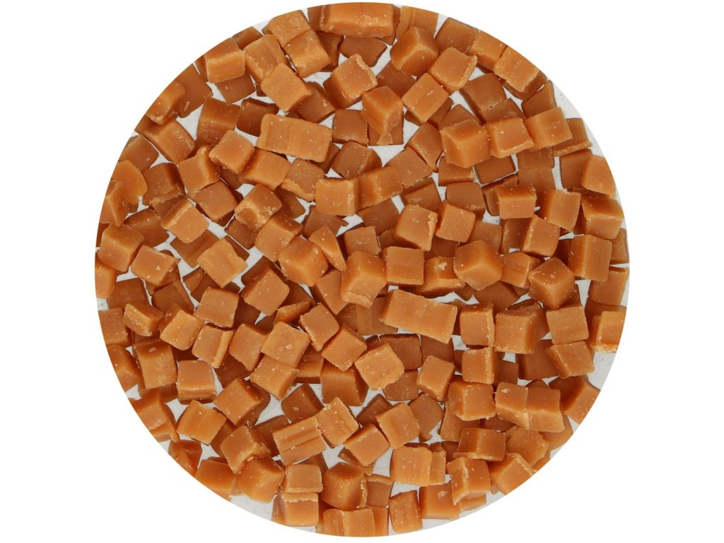 Az ehető cukrászdísszel - mini karamell kockákkal cupcake-eket, cake pops-ot, fagylaltokat, tortákat és egyéb desszerteket szórhatunk meg. Tökéletes friss nyári sütemények és desszertek díszítésére.