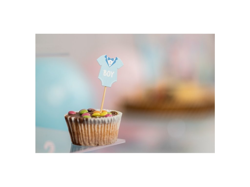 A cupcakes és mini desszertek eredeti díszítései tökéletes kiegészítők minden Baby Shower partira.