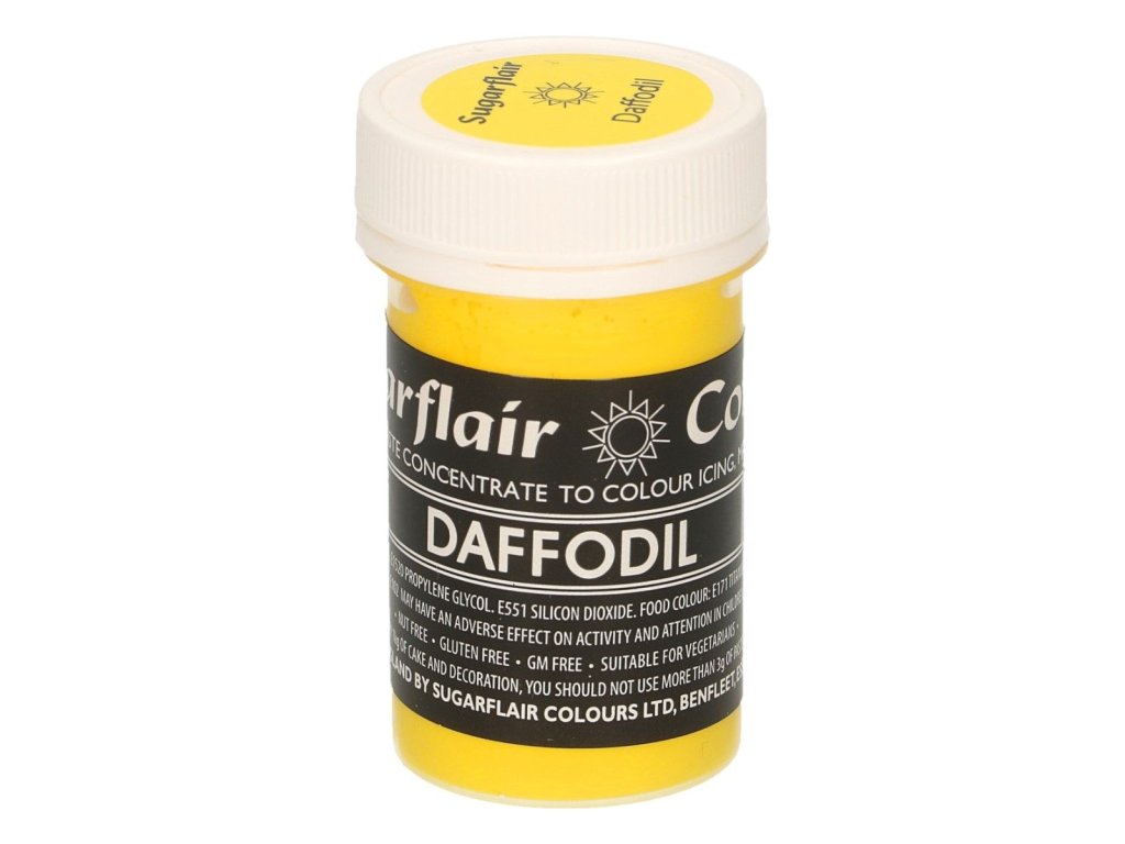 A sárga színű zselé egy koncentrált festék, amely alkalmas bevonat vagy modellező anyag színezésére. A sárga színű gél tökéletes női tortákhoz. A termék nem tartalmaz glutént és génmódosított alapanyagokat, vegánok és vegetáriánusok számára is alkalmas.