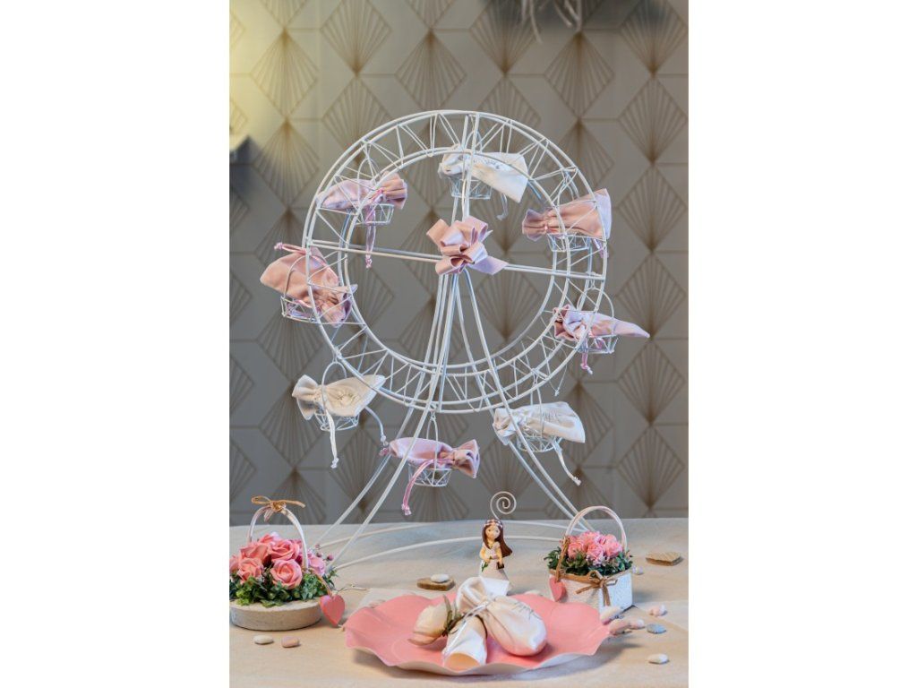 Adjon egy csipetnyi eleganciát belső teréhez ezzel a gyönyörű, fehér fém óriáskerék díszítéssel. Ez az igényesen kidolgozott darab tökéletes kiegészítője minden otthonnak. Esküvői asztal díszítésekor vagy Baby Shower ünneplésekor is használhatja. A fém óriáskerék tökéletes ajándék lesz a vintage stílus szerelmeseinek.