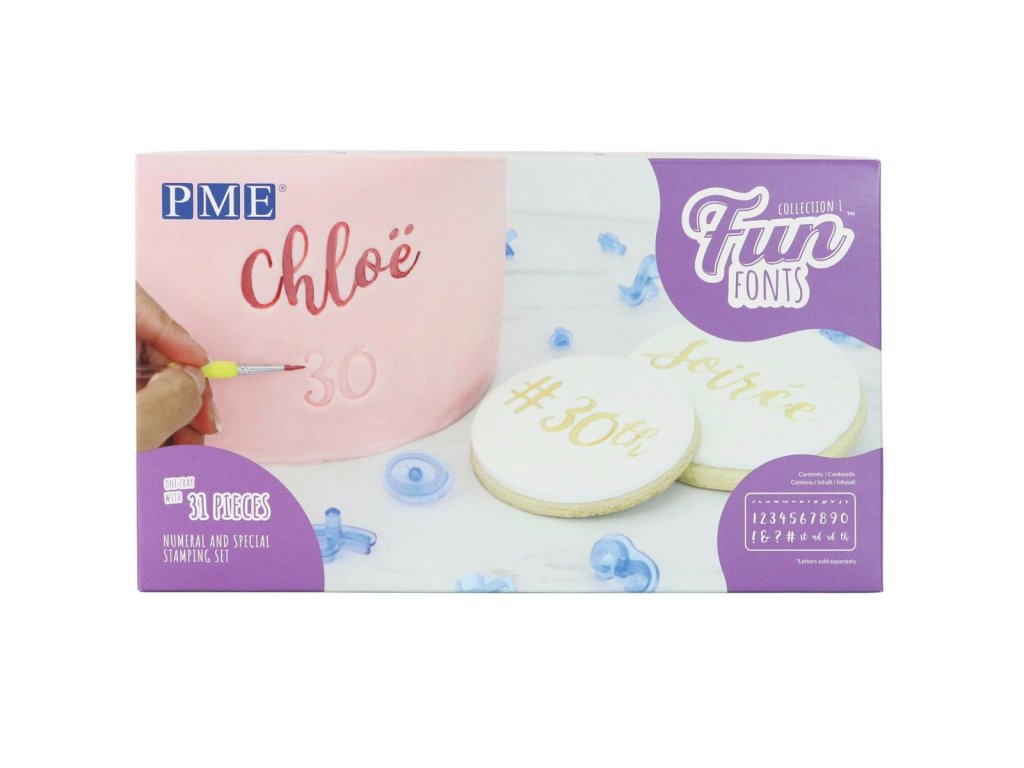 Készítsen személyre szabott tortákat és süteményeket biztonságos élelmiszer-műanyagból készült dekoratív számok és karakterek. A bélyegzők használhatóak marcipánra, fondantra, gumipasztára, mintázó anyagokra és csokoládéra. A dombornyomott számok és karakterek elhelyezés után kiszínezhetők élelmiszer színezékekkel, ehető tintás filcekkel vagy tollakkal.