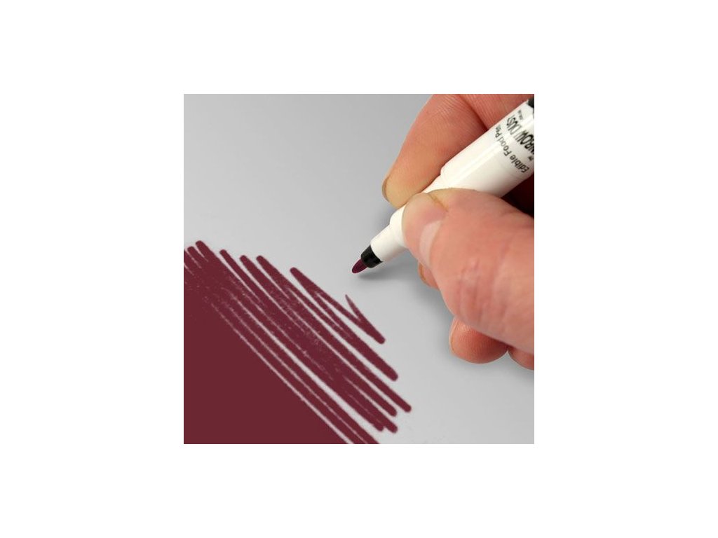 A bordó ecsetet ételfestékkel impregnálták. Tökéletes eszköz a részletes munkához, egyenes vonalak vagy érdekes díszítések eléréséhez. A kefe azonnal használatra kész. Amikor befejezte az ecsettel való munkát, törölje le a felesleges festéket a sörtékről, és tegye fel a kupakot. A termék kóser, vegánok és vegetáriánusok számára is alkalmas.
