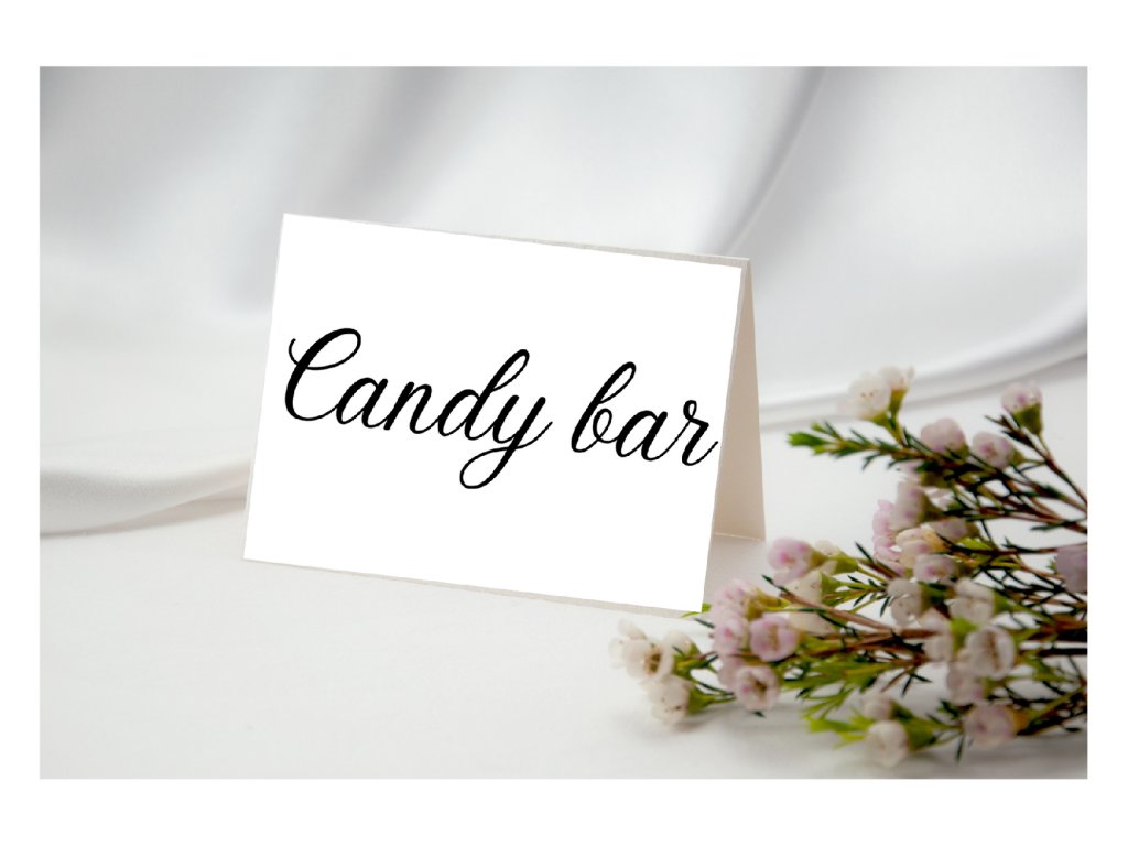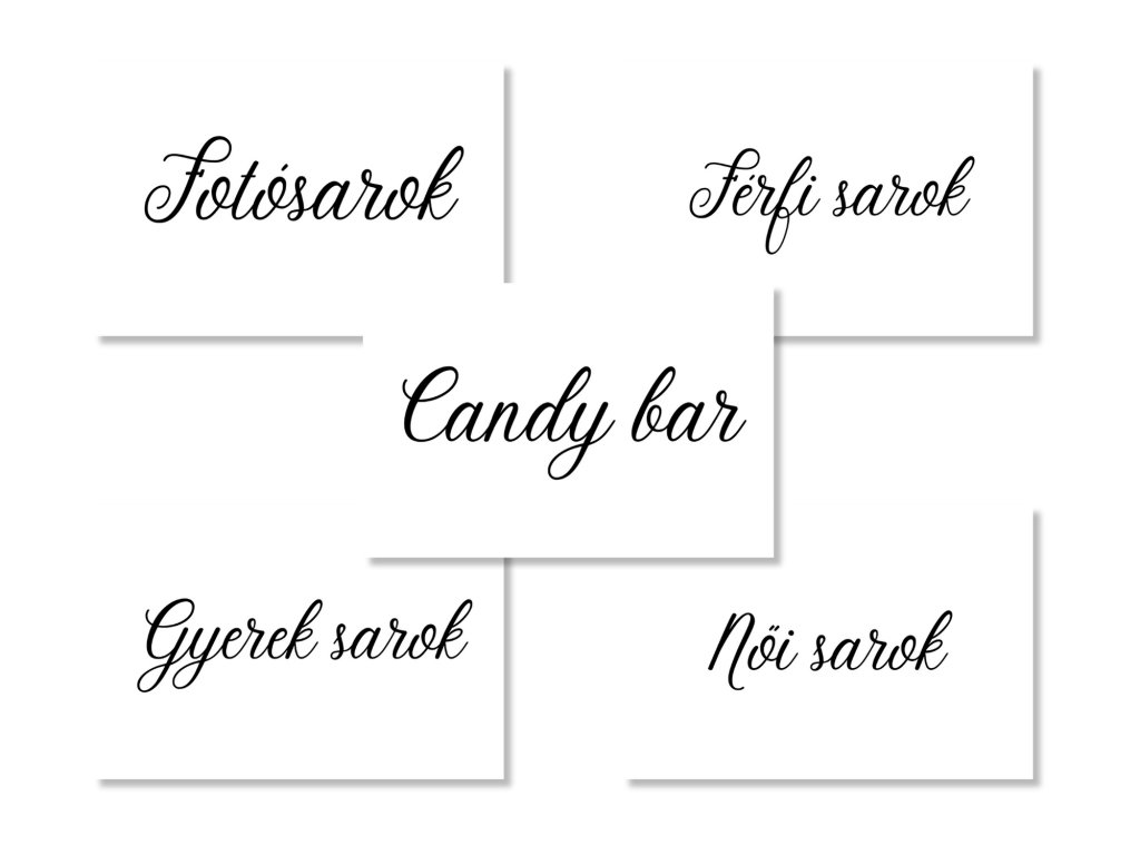 Jelölje meg nagy napjának minden fontos pillanatát esküvői információs kártyáinkkal! Elegánsan és egyszerűen készítsen stílusos jelöléseket candy bar, fotó sarok és más kulcsfontosságú helyekhez. Dizájnok széles választéka lehetővé teszi, hogy minden kártyát az Ön elképzelései és színsémái szerint szabjon testre. Könnyedén és stílusosan tudassa vendégeivel, hogy hol tartanak az esküvői fogadás egyes részei. Információs kártyáinkkal minden pillanatot elegancia és precizitás jellemez.