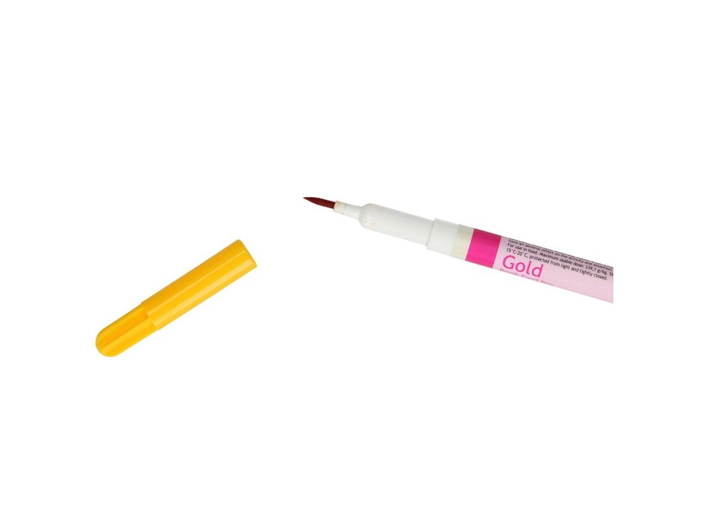 Az arany ételfesték filctoll torták, sütemények, marcipán, fondant vagy más sima felület díszítésére használható. Ehető tintát tartalmaz, melynek segítségével feliratokat, mintákat rajzolhat a bevont tortára vagy a cukordíszekre. A munka befejeztével jól lezárva tárolja.