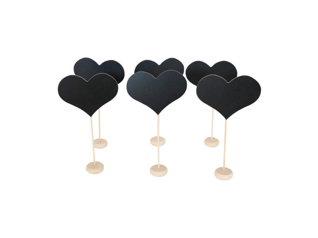 Fa asztalszámok - Fekete szív 6 db