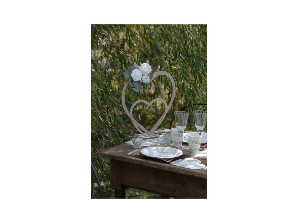 A 2 szív alakú fa dekoráció a szeretetet és a barátságot jelképezi. A szív elsősorban a szerelmet jelképezi, ezért ez a fa dekoráció különösen alkalmas esküvői fogadásra bent az asztalra vagy akár kerti esküvőn.