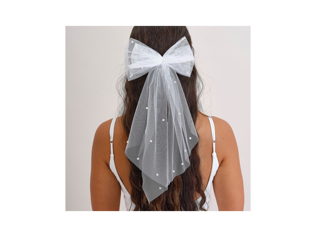 Kihagyhatatlan kiegészítőt keres a leendő menyasszonynak? Ne keressen tovább! Ez a fehér, gyöngyös tüll hajmasni ideális alternatívája a fátyolnak, ami nem hiányozhat egyetlen leánybúcsúról sem.