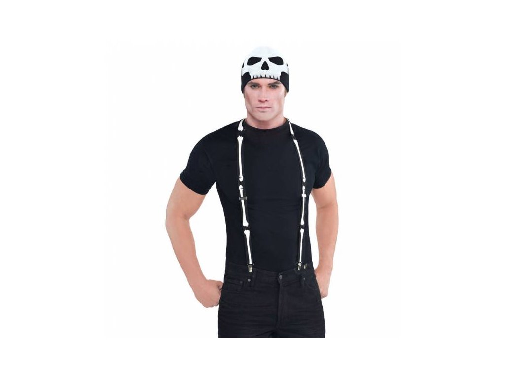 Farsangi vagy halloween jelmeze a különböző kiegészítőknek köszönhetően is élethűbben hathat, mint például ez a Fekete nadrágtartó csont motívummal. Keltse fel jelmezével az érdeklődést a partyn vagy a farsangon.