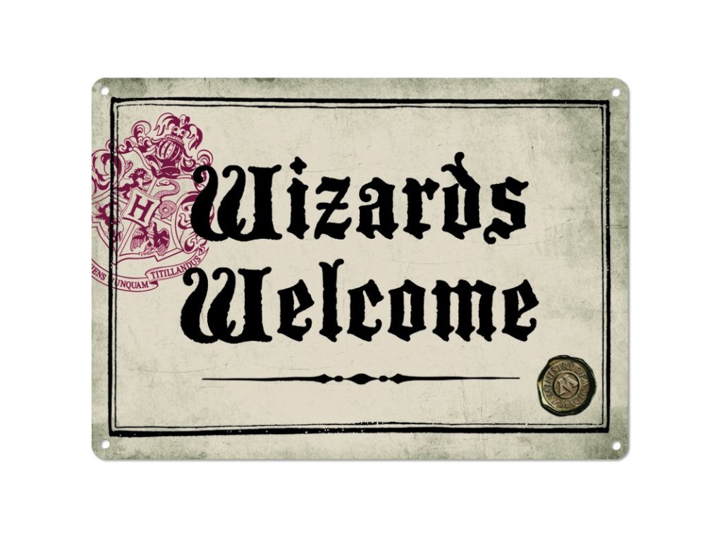 Fém tábla Harry Potter - Wizards Welcome 15 x 21 cm