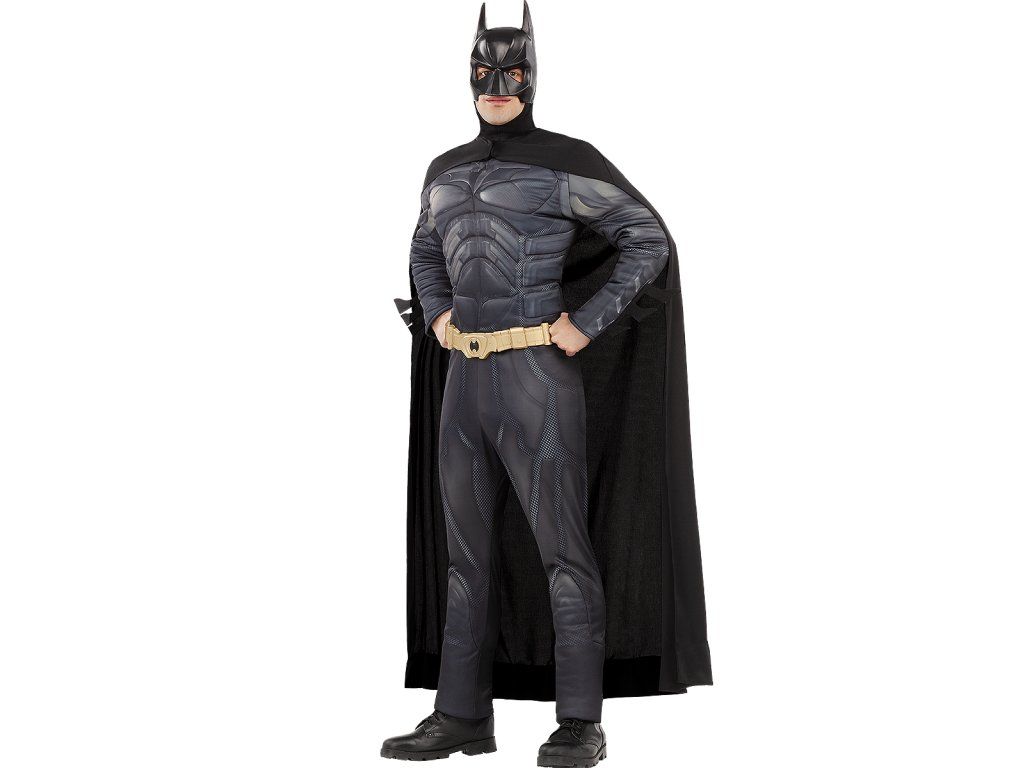 egy kényelmes overált, egy stílusos övet az összes denevér kütyühöz, egy erős félálarc, amely elrejti titkos személyazonosságát, és egy extra nagy köpeny, amely minden fordulattal drámai hatást biztosít!