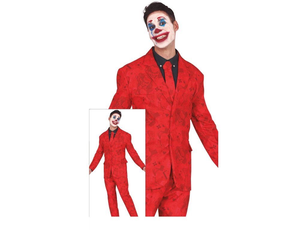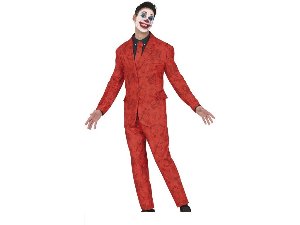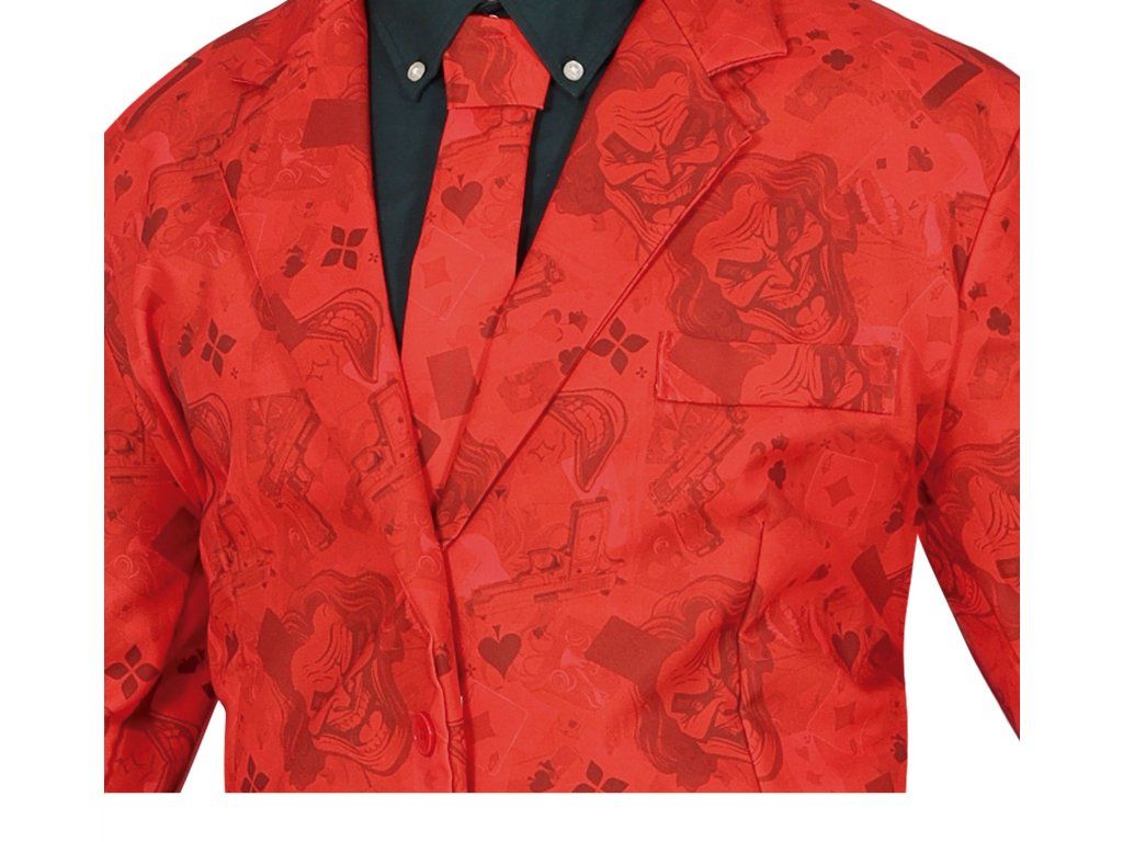A Joker jelmez egy vörös öltönyt tartalmaz, finom mintával, amelyet az ikonikus filmgonosz ihletett. A jelmez könnyen kiegészíthető bohóc sminkkel, autentikus és drámai megjelenést teremtve. Ideális Halloween partira, tematikus bulikra vagy karneválokra. A jelmez egyesíti az extravagáns megjelenést a Joker karakterére jellemző sötét káosszal.