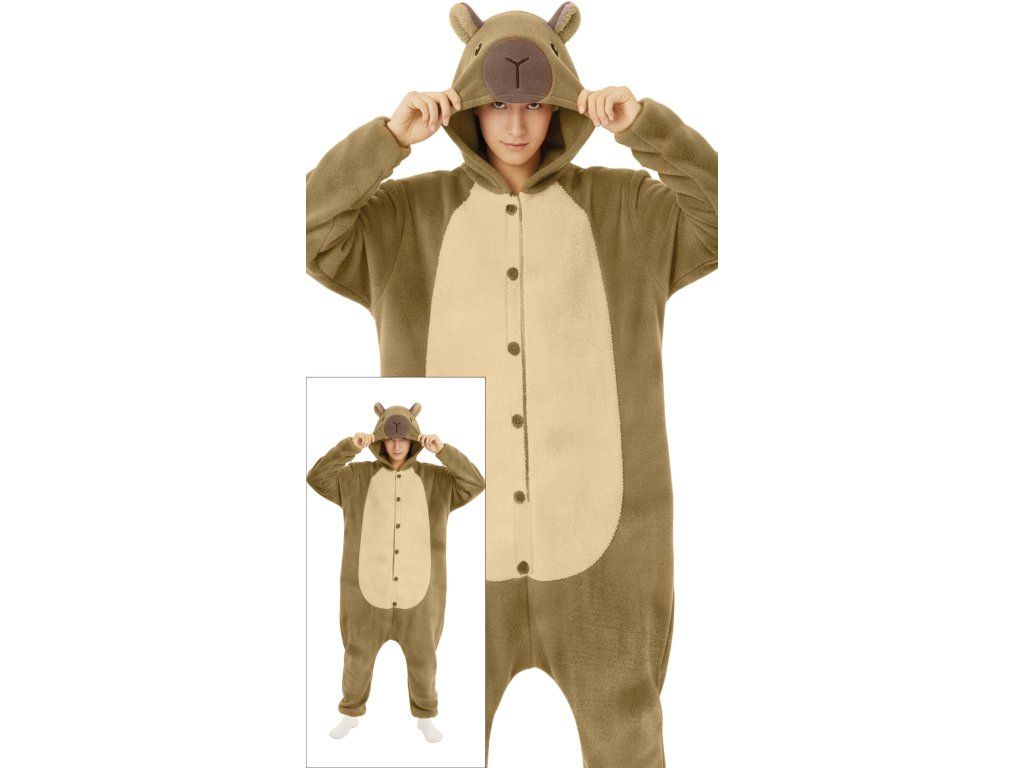 Szeretnél minden bulin sztár lenni? Ezzel a férfi kapibara jelmezzel gyerekjáték lesz! Légy a legszimpatikusabb ember a teremben – a kapibara híres lazaságáról és barátságos természetéről. A puha kezeslábas, aranyos kapibara kapucnival nemcsak kényelmet nyújt, hanem csodáló pillantásokat is bezsebelhetsz vele.
