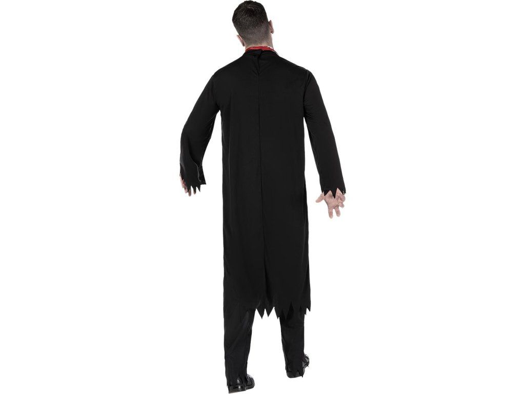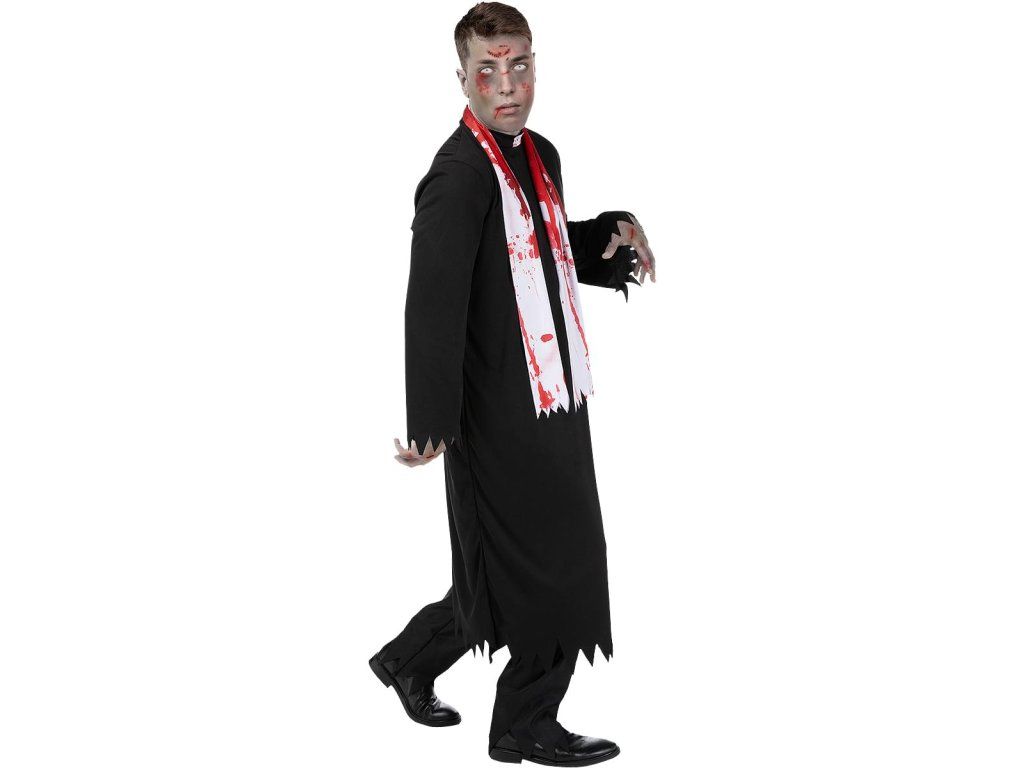A jelmez tartalma: fekete reverenda élethű „szaggatott” részletekkel, véres foltokkal és fehér stólával – hiszen a zombi papoknak is be kell tartaniuk a dress code-ot! A kereszt nem tartozék.
