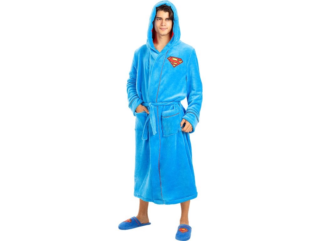 Bemutatjuk a csodálatos Superman köntöst felnőtteknek! Ez a szuperhős stílusú, kapucnis darab tökéletes mindenkinek, aki szeretné megmenteni a világot a saját otthona kényelméből.