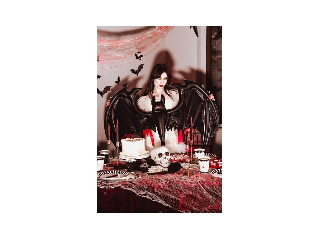 Készüljön fel egy jó adag szórakozásra – érkezik a mosolygós denevér alakú fólia lufi! Ez a cuki, repülő barát (120 x 81 cm) feldob bármilyen ünnepséget, bulit vagy rémisztő Halloween-t. Elég felfújni, és máris a jókedv szárnyai terülnek szét a szobában. A denevér készen áll, hogy a vendégek feje fölött repkedjen, és mosolyt terjesszen mindenfelé. Ideális mindazoknak, akik szeretik az eredeti dekorációkat, és azt akarják, hogy a díszítésük egyszerűen letaglózó legyen. Vigyázat, ez a lufi akár fültől-fülig tartó mosolyt is csalhat az arcodra!
